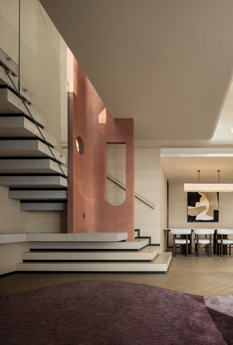 Modern style design: The furniture here combines modern and classic styles. With bold - hued chairs and cozy sofas, it creates an inviting space perfect for guests to socialize and relax.